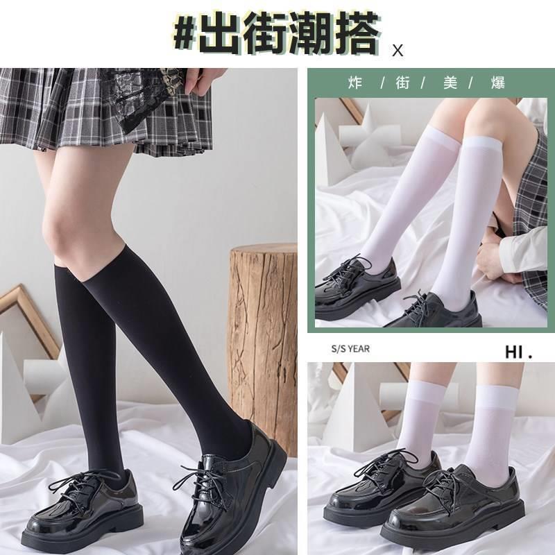 白色袜子女中筒百搭堆堆袜夏季薄款长筒过膝长袜春秋jk压力小腿袜